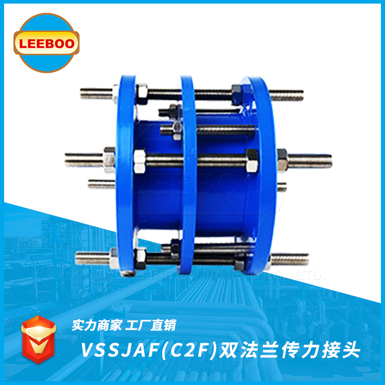 C2F(VSSJAF)型雙法蘭傳力接頭是由法蘭松套伸縮接頭和短管法蘭,傳力螺桿等構(gòu)件組成,能降低被連接件的壓力推力(盲板力)和補償管路安裝誤